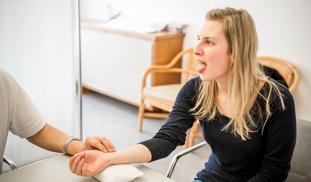 In der ersten Konsultation mit dem chinesischen Arzt, unterstützt durch einen Dolmetscher, werden die Diagnose sowie das Behandlungskonzept besprochen. Durch die vier diagnostischen Methoden – Sehen und Beobachten (Zunge, Hautfarbe, Ausdruck) / Hören und Riechen (Klang, Geruch) / Fragen (Lebensumstände, körperliches Befinden) / Fühlen (Betasten: Pulsdiagnostik) – wird eine TCM-Diagnose erstellt. Zudem werden in vielen Fällen die Auswertung technischer Diagnoseverfahren wie z. B. Röntgen, CT oder MRI miteinbezogen sowie verschiedene manuelle Funktionstests des Bewegungsapparates durchgeführt, um das Ausmass der Krankheit zu erfassen. So werden nicht nur Beschwerden, sondern auch deren Ursachen diagnostiziert.